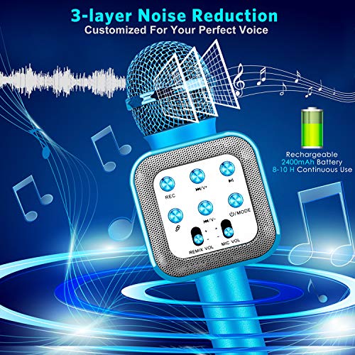 ShinePick Microfono Karaoke, 4 in 1 Bluetooth Wireless Microfono con LED Lampada Flash, Portatile Karaoke Player con Altoparlante per Android/iOS, PC e Smartphone(Blu)