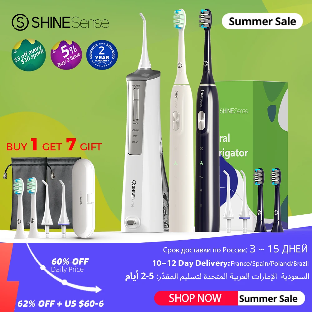 ShineSense Water Flosser Oral Irrigator Dental and Sonic Electric Toothbrush USB Rechargeabl Waterproof for Teeth Cleaner