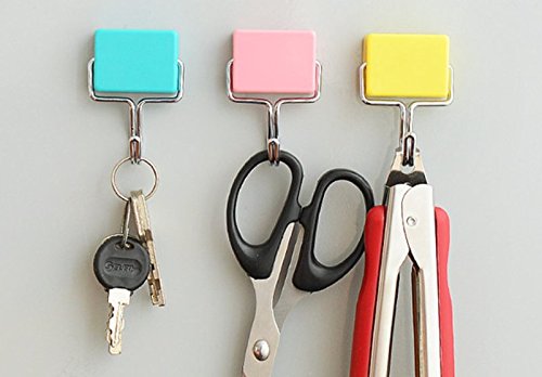 Shineus 6 ganci magnetici multiuso da cucina resistenti ganci magnetici per chiavi, cappotto, frigorifero e porte, rosa pastello, giallo, blu
