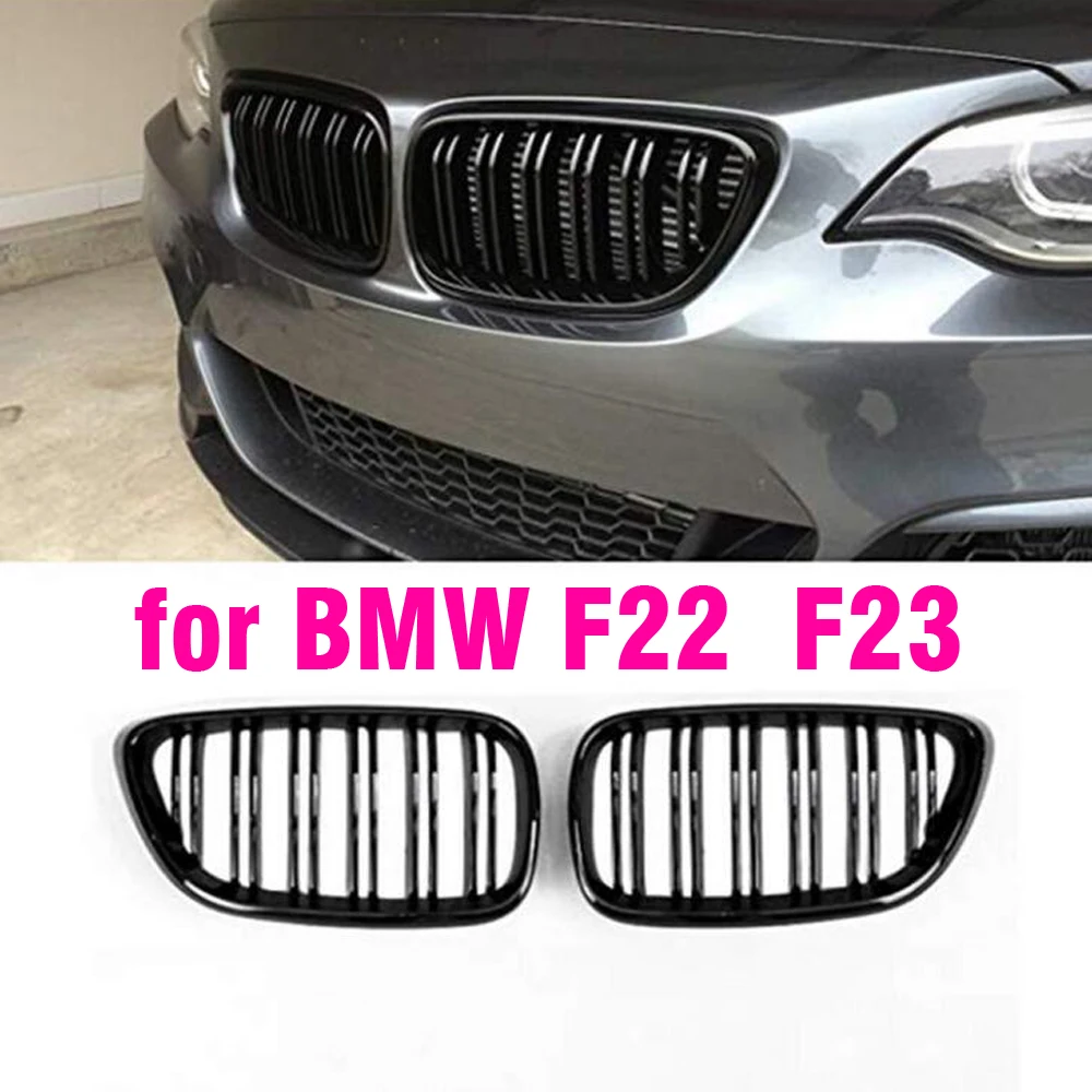 Shining Black Dual Slat Front Hood Kidney Grilles Grill Compatible for BMW F22 F23 M2 14-18 for BMW 225i 218i 220i