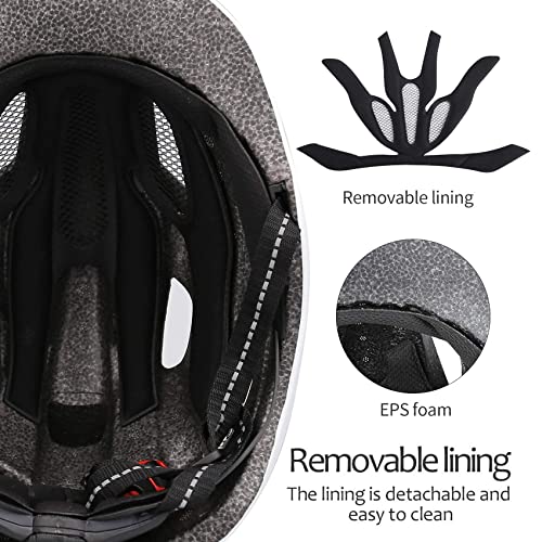 【Design della luce di sicurezza a LED】 Casco bici con luce a LED per pendolari della città con 3 modalità di flash: fisso, lento, veloce. I caschi da bicicletta plug-in retroilluminati a LED garantiscono la massima e migliore protezione e visibilità sulle strade cittadine. E il casco da bicicletta ha un design a strisce riflettenti, questo lo renderà più sicuro al buio.