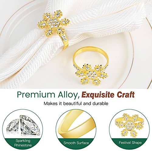 Shinowa 6 Anelli Portatovagliolo a Forma di Fiocco di Neve, Anelli Portatovaglioli di Natale in Metallo Portasciugamani con Cristalli Decorazione Natalizia per Matrimoni Banchetti Cene - Oro