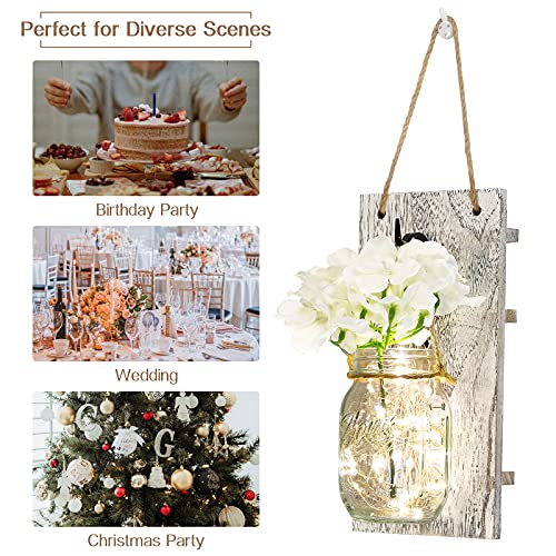 Shinowa Applique da parete per interni Mason Jar, 2 pezzi luce LED per camera da letto con fiori e telecomando, striscia LED luci e fiori rustici appesi Deco Casa per fattoria cucina soggiorno