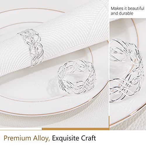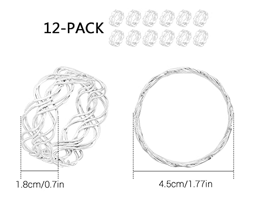 Shinowa 12 Pezzi Anelli Portatovaglioli in Metallo, Portatovaglioli da Tavola Portatovaglioli Rotondo Intrecciati Portasciugamani Decorazione della Tavola per Matrimoni e Banchetti - Argento
