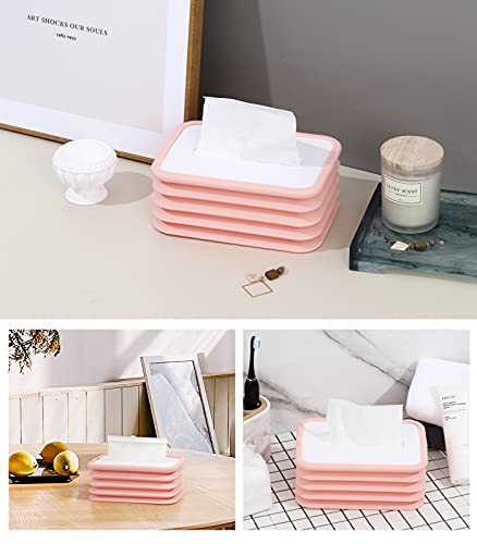 Shinowa Porta Fazzoletti e Tovaglioli, Scatola di Fazzoletti Rettangolare Pieghevole in Silicone Scatola Porta fazzoletti con Coperchio Porta Salvietti per Bagno Camera da Letto Ufficio Auto - Rosa