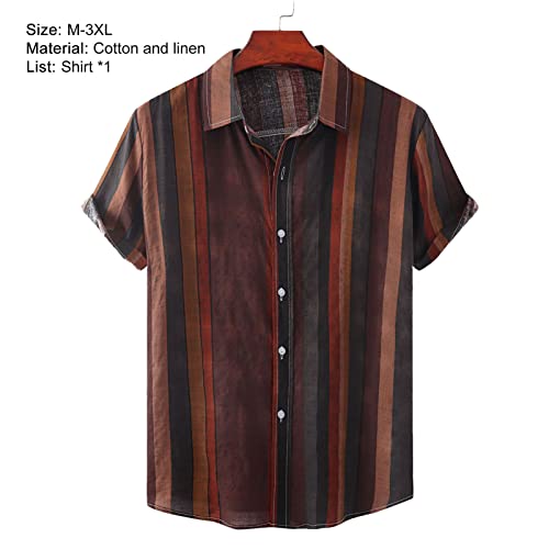 Materiale camicia: cotone lino Stile: moda Genere: uomo Tipo di taglia: regolare Stagione: estate Lunghezza manica: manica corta Tipo di collare: rovesciato Caratteristiche del collare: sciolto, stampa a righe, chiusura con bottoni