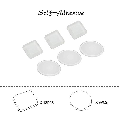 Grandi quantità: la confezione include 18 cuscinetti quadrati per paraurti (2 cm di lunghezza x 2 cm di larghezza x 0,5 cm di spessore) e 9 cuscinetti per paraurti rotondi (3 cm di diametro x 0,2 cm di spessore)