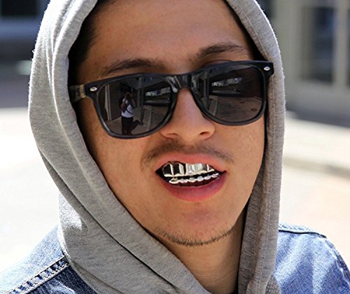Shiny Top & pi? basso, Grillz Hip Hop Set cromato con bocca, placcato argento, colore: argento