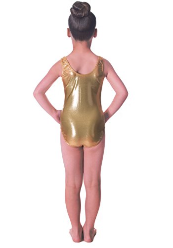 Shiny Metallic Sleeveless Dance Short Sleeved Gymnastic Leotard (9-10 Years, Gold Metallic)