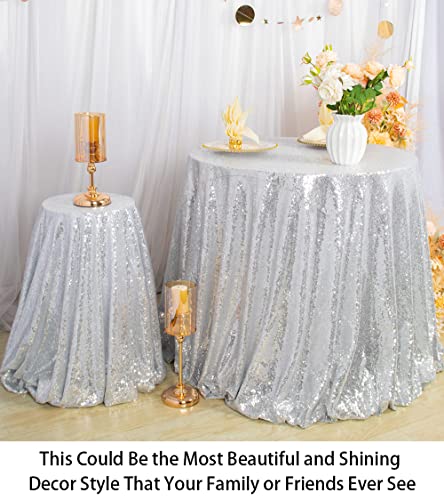 ShinyBeauty Tovaglia rotonda da 125 cm, con paillettes, colore argento, per matrimoni, feste, banchetti, tavola rotonda con paillettes, tovaglia da esterno (50 pollici, Argento)