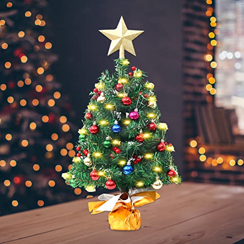 Shinybox Mini Albero di Natale Artificiale, 45 cm Albero di Natale Piccolo con luci e Ornamenti a LED, Mini Albero di Pino di Natale Artificiale per Natale Party e Decorazione Tavolo Casa (Type1)