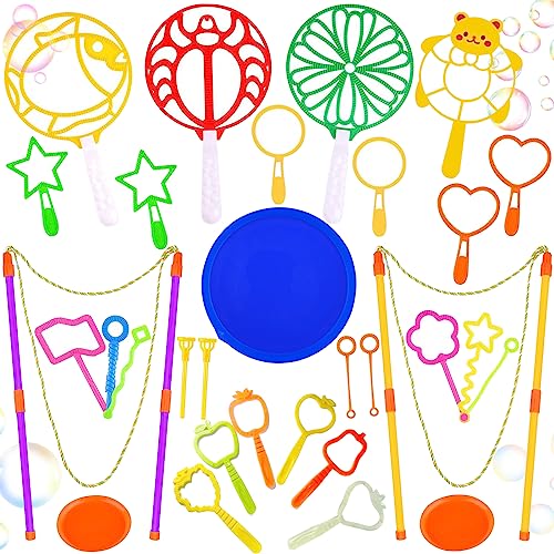 Shinybox Bolle di Sapone Set, 31 Pcs Bacchetta a Bolle Impostato, Kit Bolle di Sapone Giganti, Set di Bolle di Sapone per Bambini, Bolla di Sapone Giocattoli per Feste Giardino All'aperto