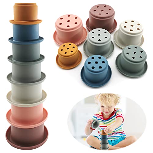 Shinybox Impilabile Cubi Bambini, 7 Pezzi Giocattoli da Bagno Giochi per Costruire, Torre Impilabile Bambino, Giocattolo Impilabile per Bambini, Giocattolo Educativo per Bambini per Ragazzi e Ragazze