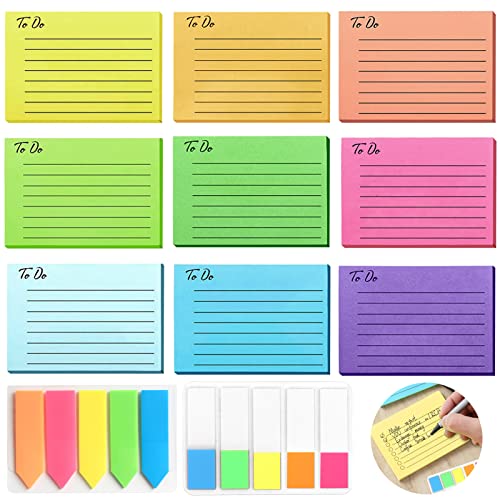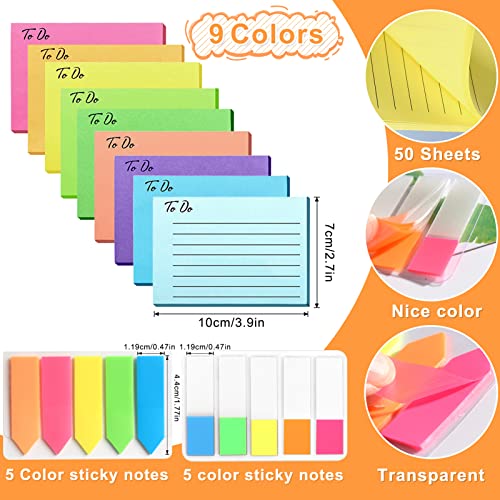 Shinybox 9 Pezzi Foglietti Adesivi, 450 Fogli Blocco Note Autoadesivo e 2 Pezzi Note Adesive per Indice, To Do List Sticky Note Autoadesive, To Do List Sticky Notes Colorati Foderato Note Adesive
