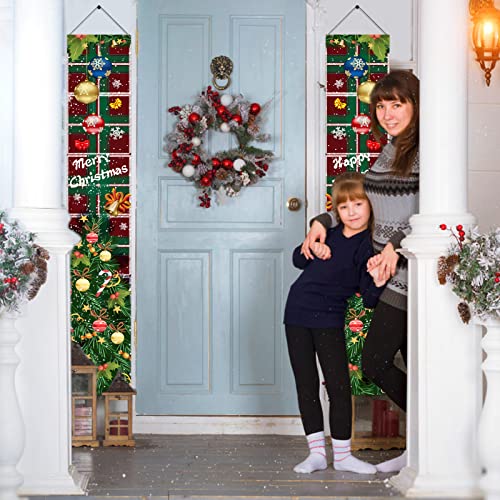 Shinybox Striscioni Natalizi, 2 Pezzi di Segno di Portico di Natale, Buon Natale Striscioni, Striscioni Natalizi da Appendere Decorazioni Natalizie per Porte, Banner Buon Natale per Patio, Finestra