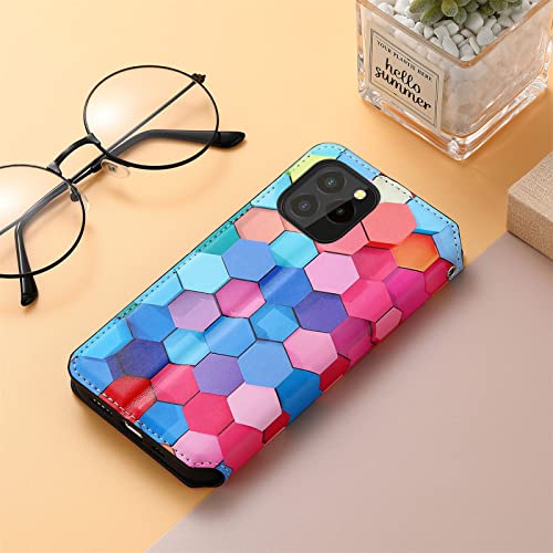 ShinyCase per OUKITEL C21 PRO 2021 Custodia PU Pelle Wallet Telefono Custodia Magnetica Protettiva Flip Case Anti-Scratch Caso Portafoglio Custodia per OUKITEL C21 PRO 2021 Case,Esagono Colore