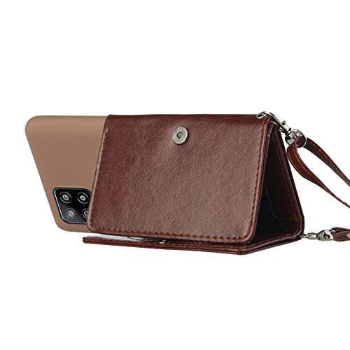 Shinyzone Catena per Cellulare Custodia per Samsung Galaxy A12 5G con Cordino e Porta Carte,Custodia a Tracolla Collana,Cinturino Pelle PU Regolabile,TPU Corda Silicone Cover,Marrone