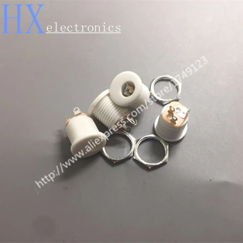 Free shipping 100PCS outlet power plug DC-022 with nut white DC022 5.5*2.1MM socket hole threaded