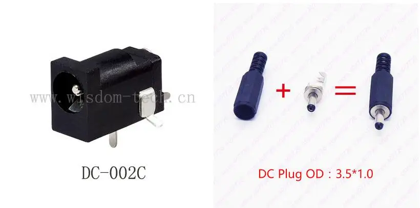 Free shipping 100PCS DC Power Jack Power Charging Socket Female Pin1.0*O.D.3.5mm DIP DC Connector DC-002C