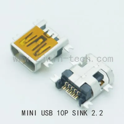 Free shipping 10pcs/lot SMT 10 Pin Mini USB Female Jack Socket Connector( Sink 2.2 SMT type )