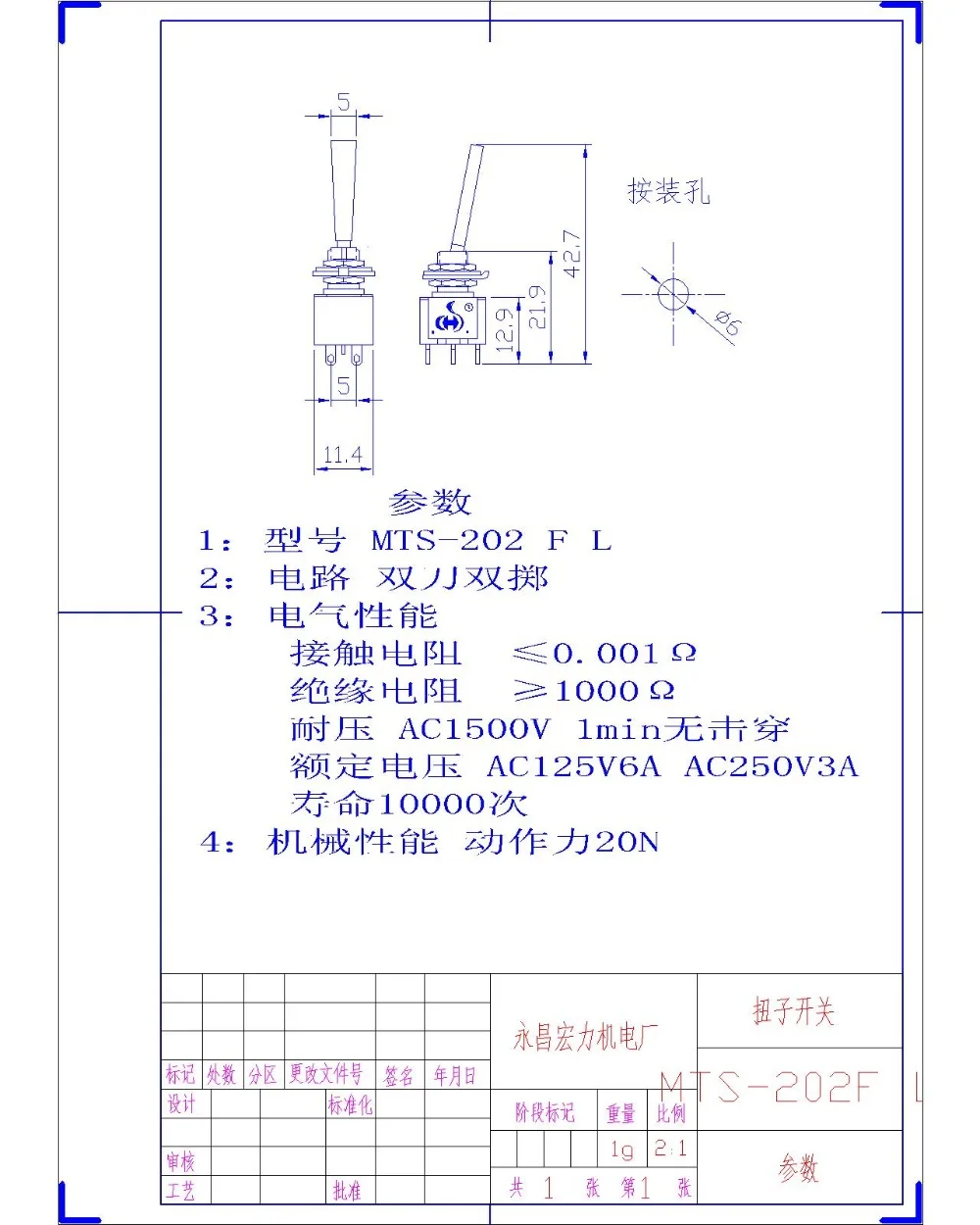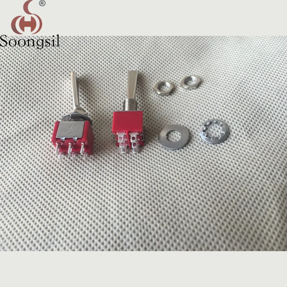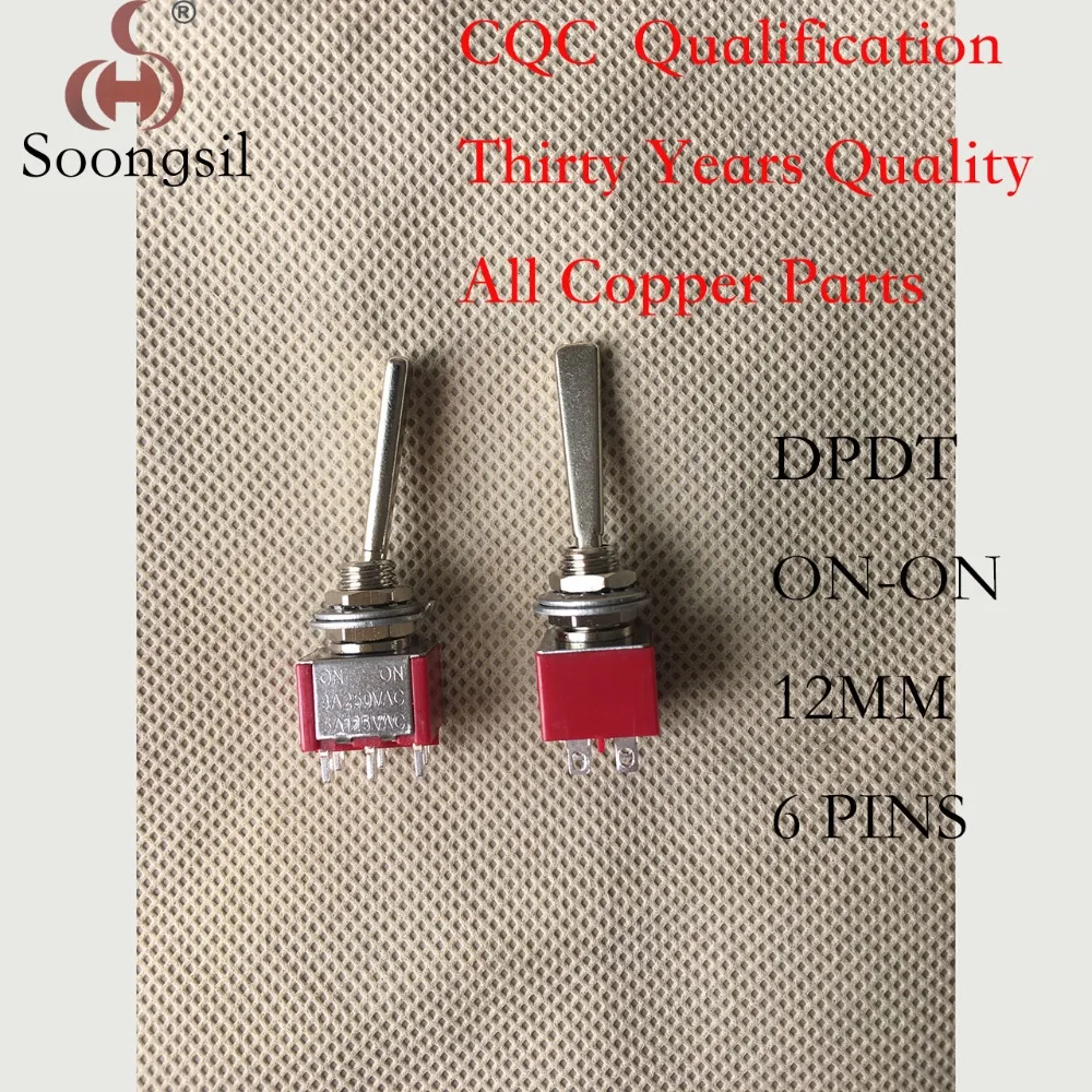 Free Shipping 5PCS/lot New Long Flat handle 6 Pin ON-ON DPDT CQC UL ROHS Silvery Point Toggle Switch AC 6A/125V 3A/250V