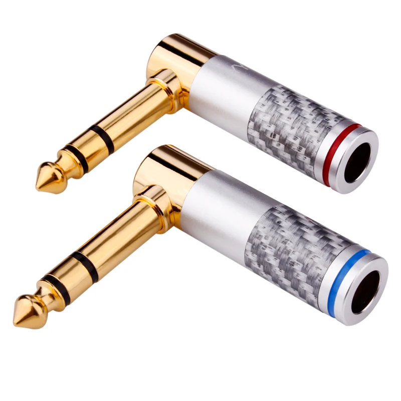 Free shipping 6.35mm 90 Degree right angle male phone jack plug audio adapter Solder Connector