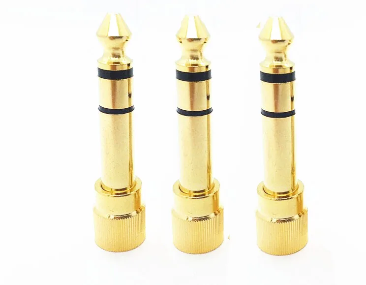 Free shipping Gold 1/4" 6.35mm to 3.5mm Plug Stereo Audio Headphone Screw Adapter 5pcs High Quality