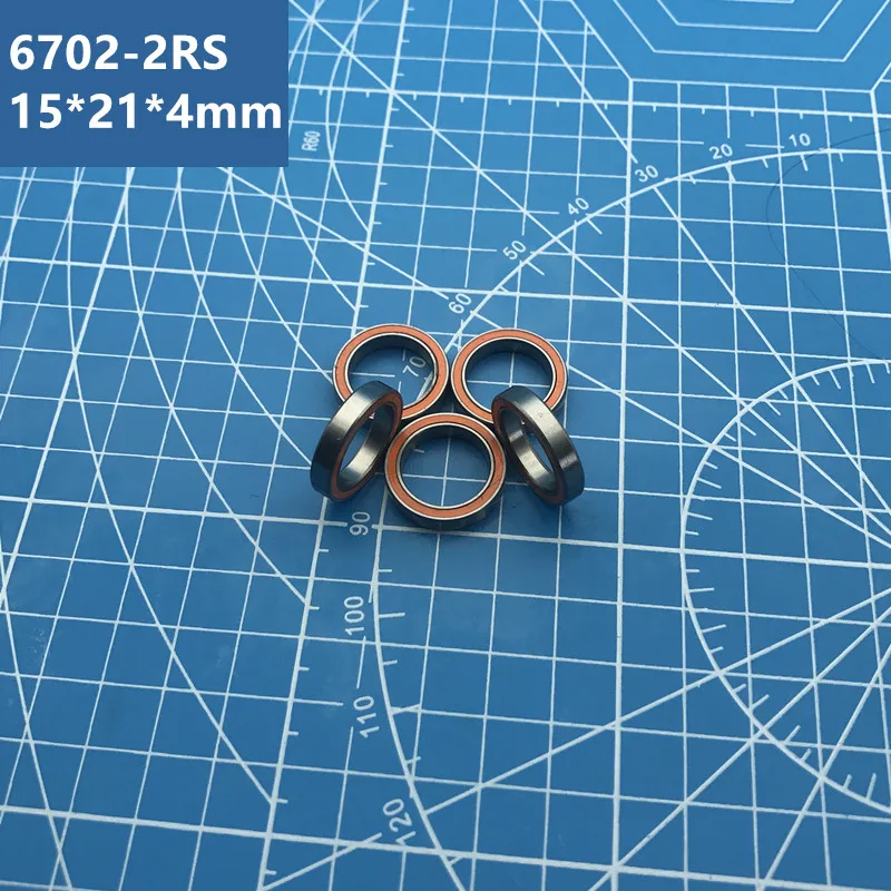 Free Shipping10pcs 6702RS The high quality of Orange sealed ultra-thin section deep groove ball bearing 6702-2RS 15*21*4 mm 6702