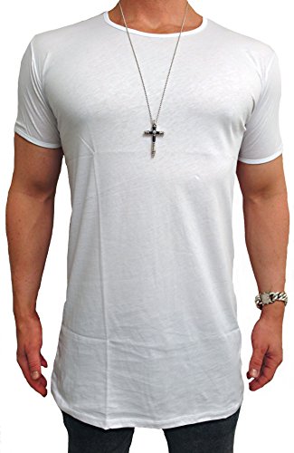 Deep Shirt Basic OVERSIZE STYLE - Maglia lunga estiva da uomo, a maniche lunghe, con cappuccio, a maniche lunghe, colore: bianco e nero