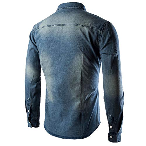 Z&Y Glaa Uomo T Shirt Tops Cime Moda Camicia in Jeans Maglietta Informale Camicia Jeans Slim Fit Manica Lunga Primavera AutunnoSlim-Fit Long-Sleeve Band-Collar Denim Shirtche Si abbottona Uomo