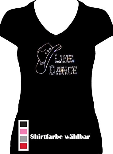 Fun Shirt Line Dance con Cappello da Cowboy con Cristalli Strass da Donna Elegante e alla Moda