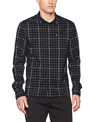 Odlo Shirt l/s Fairview, Camicia Uomo, Nero-Grigio Grafite-Tradewinds-Quadretti, S