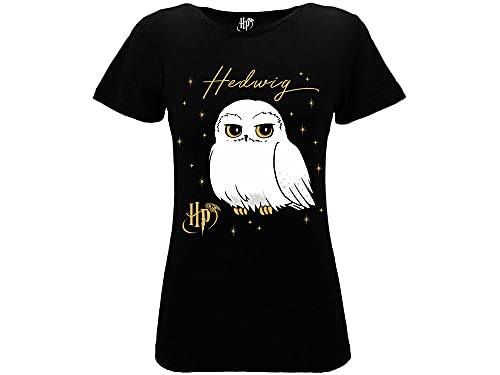T Shirt Harry Potter Civetta Edvige. Modello da Donna. Colore Nero. 100% Cotone. Prodotto Ufficiale HP. Licenza Originale. (S)