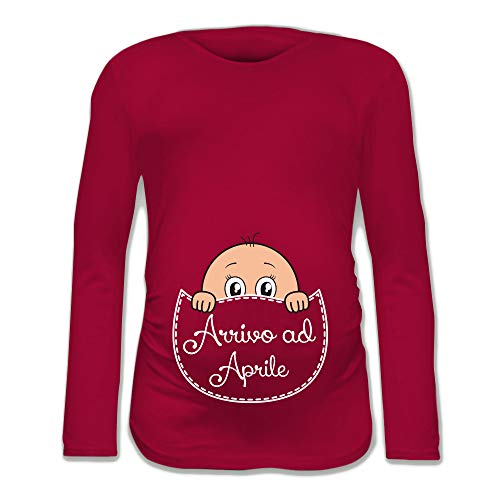 T Shirt Maglia Premaman in Arrivo a Aprile Fucsia Maschietto L Manica Lunga