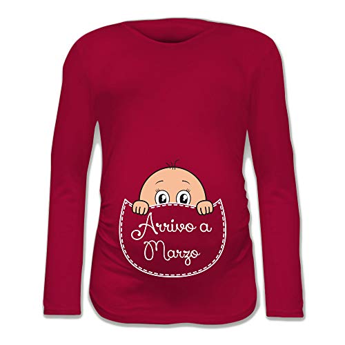 T Shirt Maglia Premaman in Arrivo a Marzo Fucsia Femminuccia S Manica Lunga