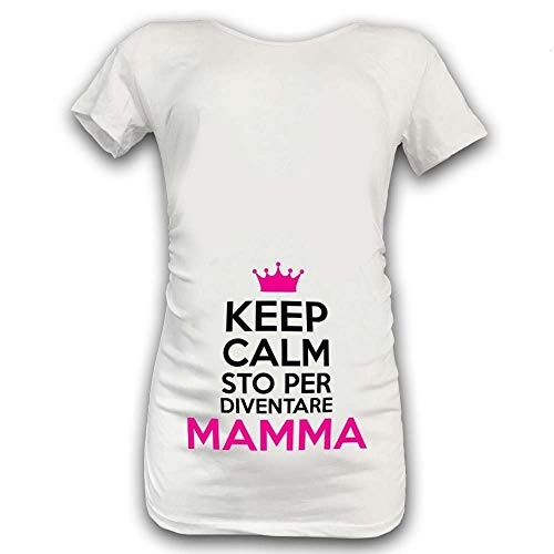 T Shirt Maglia Premaman Keep Calm STO per Diventare Mamma Bianca Bianca Grafica Fucsia L Manica Lunga