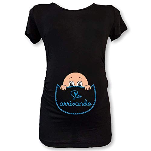 T Shirt Maglia Premaman Mezza Manica STO Arrivando Nera Maschietto XL Manica Corta