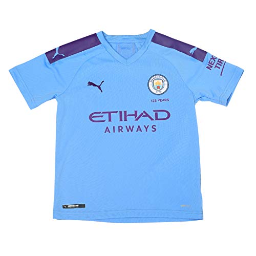 PUMA MCFC Home Shirt Replica SS Jr with Sponsor Logo, Maglia Calcio Unisex Bambini, Blu (Team Light Blue/Tillandsia Purple), 152