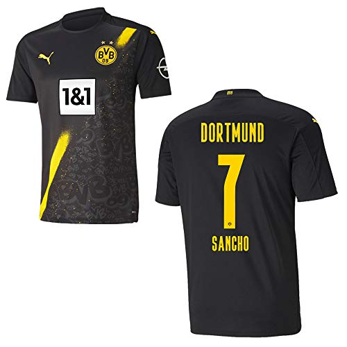 Puma BVB Away Shirt Replica SS Jr W.Sponsor New, Maglietta Bambino, Black, 176