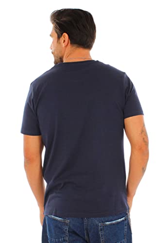 T Shirt Uomo con Taschino in Cotone Maglia Manica Corta Basic (Blu, L)