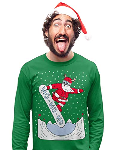 Shirtgeil Babbo Natale sullo Snowboard Ho-Ho-Ho Ugly Xmas Maglia Uomo Manica Lunga Medium Rosso