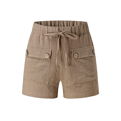 SHITOUJI Sportivi Pantaloncini da Spiaggia da Donna a Vita Alta Casual Comodi in Lino con Bottoni in Cotone Estivo con Tasche Pantaloncini da Donna fluidi Pantaloncini da Bagno