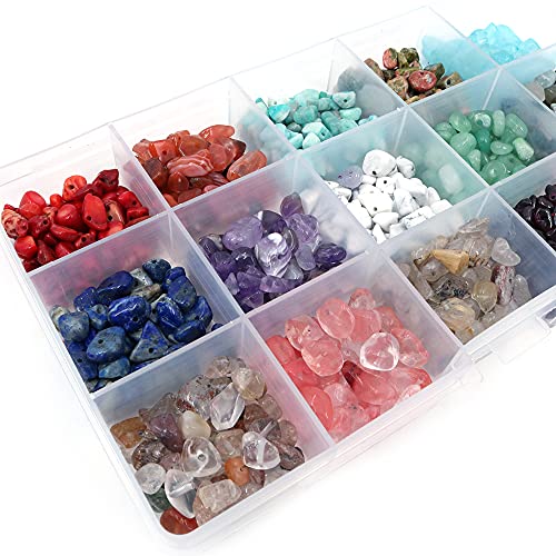 Shiwaki 15 Kinds Beads Natural Chips Irregular Color Assorted Box Set Loose Beads 4~8mm Crystal Energy Stone Healing for Jewelry Making