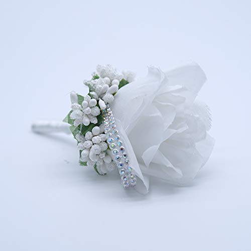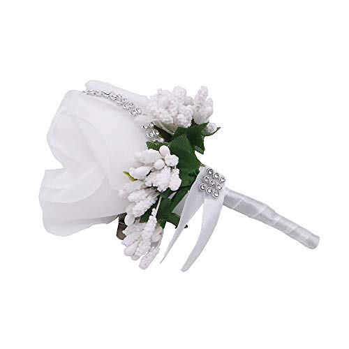 Shiwaki 2 pezzi Fiore Artificiale Uomini Asole a Mano in Seta Rosa Uomini Corpetto per il Ballo di Nozze Forniture per Matrimonio Decorazione (Bianco)