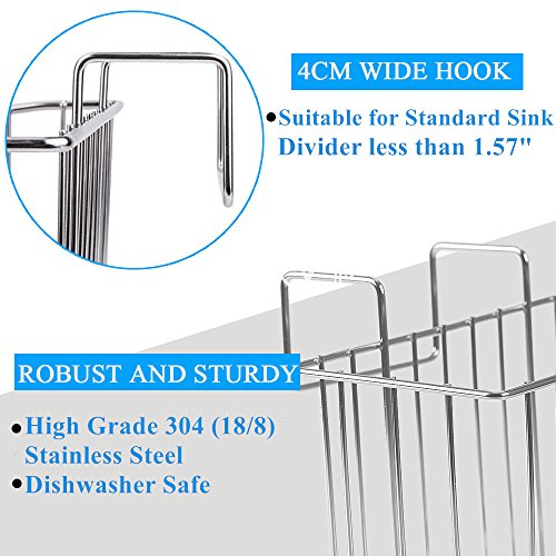 Questo portaspugna è realizzato in acciaio inox SUS-304 (18/8) lucidato (altamente raccomandato), resistente alla corrosione e alla ruggine anche nel lavandino umido.