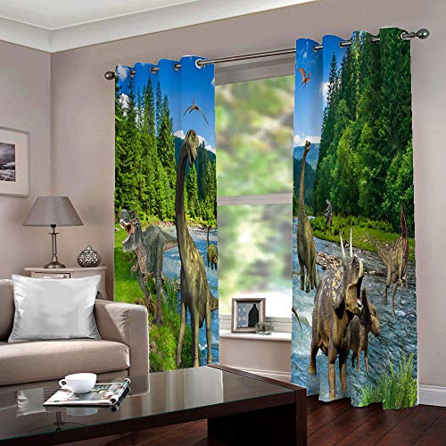 Shkdif Tende 3D Oscuranti Dinosauro,Drappeggi Moderni Decorazione da Interni Casa Piccole Finestre Camera Ragazze Salotto Tessuti 220Wx215H Cm