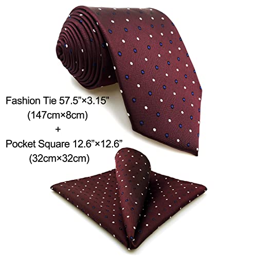 S&W SHLAX&WING Cravatta da uomo bordeaux marrone con puntini cravatte di dimensioni classiche a pois