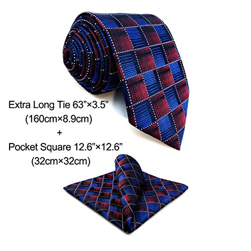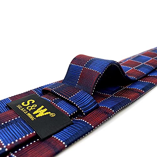 S&W SHLAX&WING Cravatta da uomo blu bordeaux cravatta rossa per uomo cravatta extra lunga a scacchi con fazzoletto da taschino