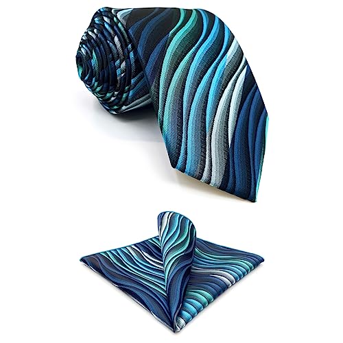 Shlax&Wing Cravatta da uomo Ripple Blu Multicolore Seta Verde Lungo 160cm Seta