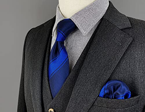 S&W SHLAX&WING Cravatte per uomo Reale Blu Marina Militare Set di cravatte Cravatta a righe classiche con fazzoletto da taschino